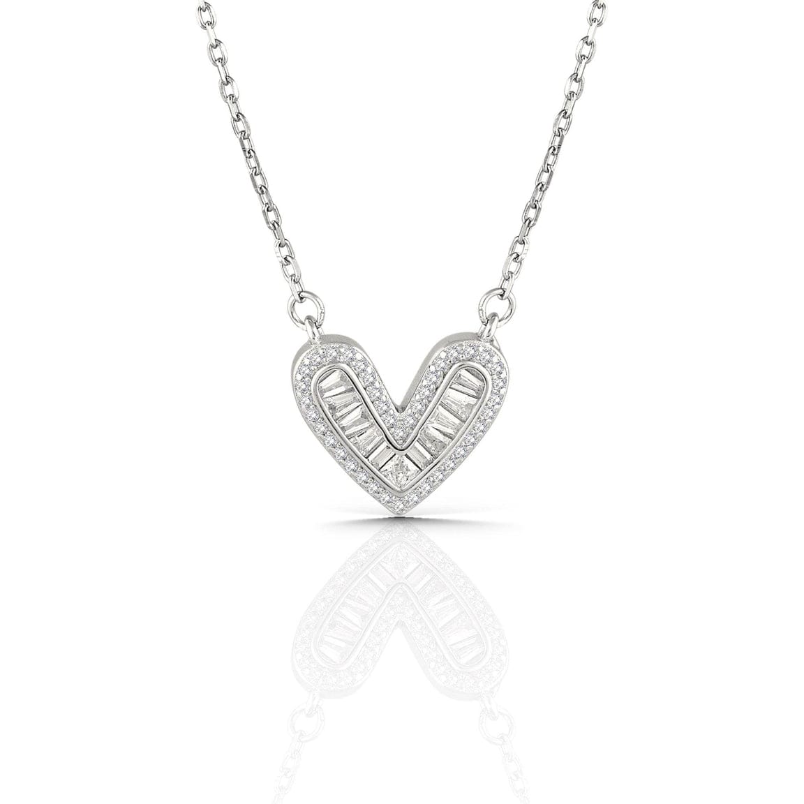 Heart with Round and Baguette Simulated Diamond CZ Necklace